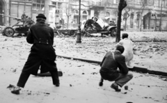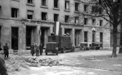 Üllői út a Páva utáctól a Kisfaludy utca felé nézve, középen egy kilőtt BTR 40-es lövészpáncélos.
