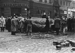Rákóczi út - Nagykörút kereszteződés, a Sztálin-szobor darabolása.