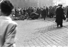 Nagykörút - Rákóczi út kereszteződése, a Sztálin-szobor darabolása.