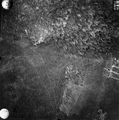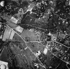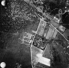 légifotó a Budakeszi erdőről. Bal oldalt alul Makkosmária látható a kegytemplommal. A felvétel 1944. április 14-én készült.