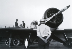 United Airport (később Hollywood Burbank Airport), az Atlanti-óceán átrepülésére készülő "Justice for Hungary" névre keresztelt Lockheed Sirius repülőgépről készítenek filmfelvételt. Leltári jelzet: 16771
