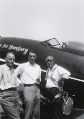 United Airport (később Hollywood Burbank Airport), a "Justice for Hungary" névre keresztelt Lockheed Sirius repülőgép. Szemben sapkával a fején az Atlanti-óceán átrepülésére készülő Endresz György pilóta, középen Magyar Sándor navigátor jobbra a Lockheed gyár pilótája. Leltári jelzet: 16763
