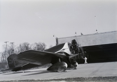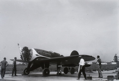 Ford repülőtér, a "Justice for Hungary" névre keresztelt Lockheed Sirius repülőgép. Endresz György pilóta és Magyar Sándor navigátor repülőgépe az Atlanti-óceán átrepülése előtti próbarepülésre előkészítve. Leltári jelzet: 16786