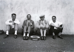 Eördögh Elemér pápai prelátus kertjében az Atlanti-óceán átrepülését támogató Prattinger Ferenc újságíró, főszerkesztő, a házigazda és Szalay Emil húsgyáros, Endresz György pilóta, Bánhidi Antal gépészmérnök, repülőgép tervező. Leltári jelzet: 16793
