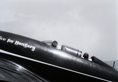 "Justice for Hungary" névre keresztelt Lockheed Sirius repülőgép. Endresz György pilóta és Magyar Sándor navigátor repülőgépe az Atlanti-óceán átrepülése előtt. Leltári jelzet: 16800