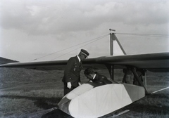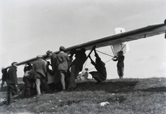 »Lippisch-Stamer „Hol's der Teufel” típusú vitorlázó repülőgép gumiköteles start előkészítése közben.« Leltári jelzet: 16855