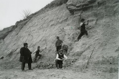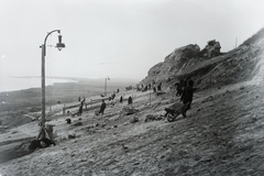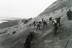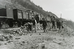 a löszfal megerősítésén dolgozó kubikosok a település térségében, az 1914. május 11-én történt földcsuszamlást és vasúti balesetet követően. Leltári jelzet: MMKM TFGY 2017.6.6