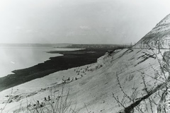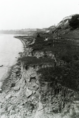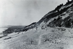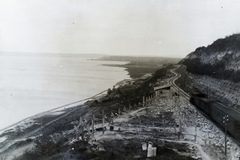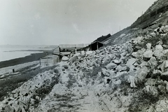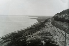 a települések között 1914. május 11-én bekövetkezett földcsuszamlással a Balatonba sodort MÁV 220 sorozatú gőzmozdonyának és kocsijainak kiemelése. Balra a régi, csuszamlással sújtott nyomvonalon már személyvonat közlekedik, jobbra épül az új nyomvonal. Leltári jelzet: MMKM TFGY 2017.6.89