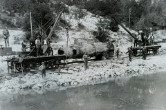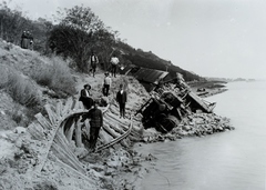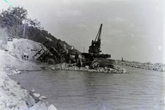 a települések között 1914. május 11-én bekövetkezett földcsuszamlással a Balatonba sodort MÁV 220 sorozatú gőzmozdony kazánjának kiemelése a MÁV XI. pályaszámú darukocsival. Leltári jelzet: MMKM TFGY 2017.6.44