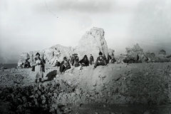 kubikosok ebédelnek a település térségében, a löszfal megerősítésére irányuló munkálatok szünetében, az 1914. május 11-én történt földcsuszamlást és vasúti balesetet követően. Leltári jelzet: MMKM TFGY 2017.6.15