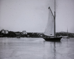 a parton a lehorgonyzott hajó mögött a Yacht Club épülete (a későbbi Vitorlás étterem). Leltári jelzet: MMKM.TFGY.2017-11-06