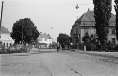 Várkerület (Lenin körút) az Előkapu felé nézve, balra a Városháza és mögötte a Tűztorony.