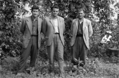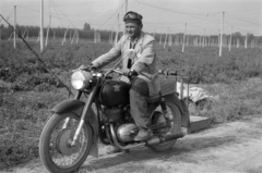 Horvátkimle (ekkor önálló), Csepel Pannonia TLT típusú motorkerekpár a komlóültetvény mellett.