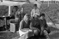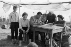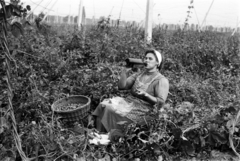 Horvátkimle (ekkor önálló), komlóültetvény, komlószedők pihenőn az átvételi pontnál.