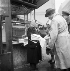 Kálvin tér, hírlapárus a Baross utca torkolatánál.