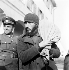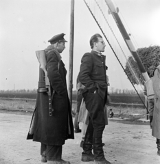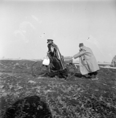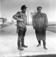 Untere Hauptstrasse, magyar menekült és egy osztrák határőrtiszt a vámház előtt.