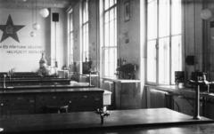 a Magyar Királyi József Nádor Műszaki és Gazdaságtudományi Egyetem (később Budapesti Műszaki és Gazdaságtudományi Egyetem) CH / Kémiai épületének helyreállított laboratóriumában a "Budapest Székesfőváros Gázművei" által karácsonykor adományozott berendezése.