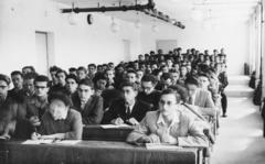Polinszky Károly vegyészmérnök adjunktus, majd Kossuth-díjas, oktatáspolitikus, a Magyar Királyi József Nádor Műszaki és Gazdaságtudományi Egyetem (később Budapesti Műszaki és Gazdaságtudományi Egyetem) CH / Kémiai épületének helyreállított nagy előadó termében.
