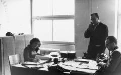 Veszprémi Vegyipari Egyetem (később Pannon Egyetem). Dr. Polinszky Károly vegyészmérnök rektor, későbbi Kossuth-díjas, oktatáspolitikus dolgozószobájában.