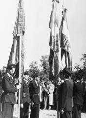 a Budapesti Műszaki Egyetem Veszprémre kihelyezett nehézvegyipari karának megnyitó ünnepsége 1949 október 16-án (később Veszprémi Vegyipari Egyetem, majd Pannon Egyetem). A péti, fűzfői és ajkai üzemek dolgozói adományoztak zászlókat az egyetem ifjúságának.