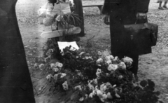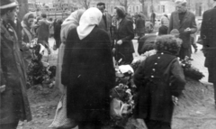 Ferenc tér, az 1956-os forradalom alatt elesettek ideiglenes sírjai. A felvétel a Tompa utca irányából a Bokréta utca 15. számú ház felé nézve készült.