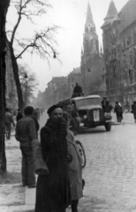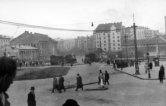 Széna tér, szemben a Margit körút (Mártírok útja). Balra a Margit körúti egykori fogház épületei.