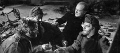 a felvétel az Egy szerelem három éjszakája című film forgatásakor készült. Balról Latinovits Zoltán, Sinkovits Imre és Darvas Iván színművészek, pipával Révész György a film rendezője.