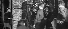 a felvétel Az oroszlán ugrani készül című magyar film forgatásakor készült, balra Révész György a film rendezője, jobbra Bujtor István színművész, mögöttük takarva Medveczky Ilona táncosnő.
