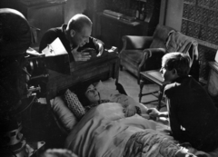 a felvétel az Egy szerelem három éjszakája című film forgatásakor készült. Az ágy végénél Révész György a film rendezője áll. Venczel Vera sznművésznő mellett Tóth Bálint sznművész ül