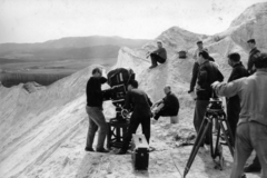 a felvétel az Egy szerelem három éjszakája című film forgatásakor a dolomitbányában készült. A kameránál Somló Tamás operatőr, középen a ládán Révész György a film rendezője ül.