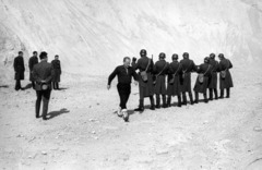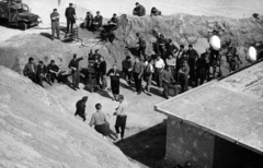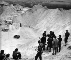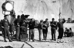 a felvétel az Egy szerelem három éjszakája című film forgatásakor a dolomitbányában készült. Jobb szélen háttal Révész György a film rendezője.