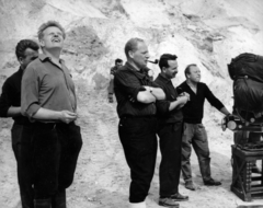 a felvétel az Egy szerelem három éjszakája című film forgatásakor a dolomitbányában készült. Középen Révész György a film rendezője.