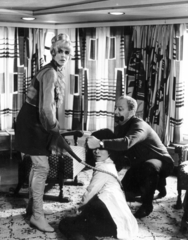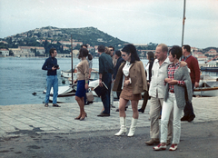 kikötő. A felvétel Az oroszlán ugrani készül című magyar film forgatásakor készült, előtérben balra Medveczky Ilona táncosnő, középen Révész György a film rendezője.