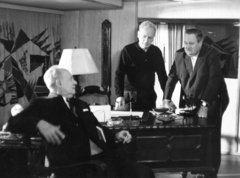 a felvétel Az oroszlán ugrani készül című magyar film forgatásakor készült, középen Révész György a film rendezője, balra Ajtay Andor és jobbra Szendrő József színművész.