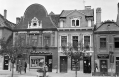 Klauzál tér, szemben Róna József szobrászművész alkotása Kossuth Ljos szobra (1902), mögötte a Virág cukrászda terasza.